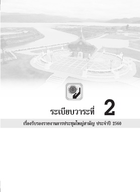 2 ระเบียบวาระที่ เรื่องรับรองรายงานการประชุมใหญ่สามัญ ประจำาปี 2560 รายงานประจำาปี 2561 สหกรณ์ออมทรัพย์กรมชลประทาน จำากัด 31 AW ���������������� �� �� 61 (190x260 mm).indd 31 11/19/18 5:42 PM
