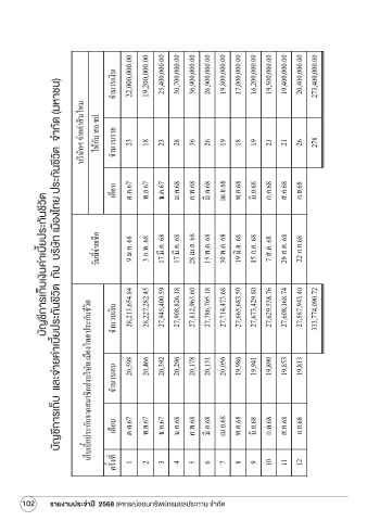 ีํากัด (มหาชน) ั ำ บริษัทฯ จ่ายค่าสินไหม ให้กับ สอ.ชป. จํานวนราย 23 18 23 28 36 26 19 18 19 21 21 26 278