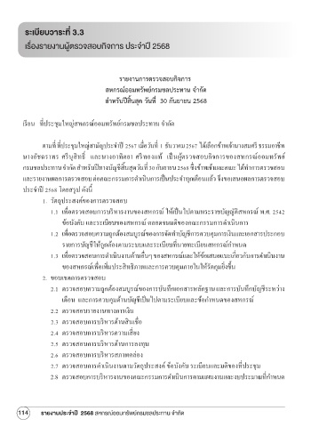 เรื่องรายงานผตรวจสอบกิจการ ประจาปี 2568