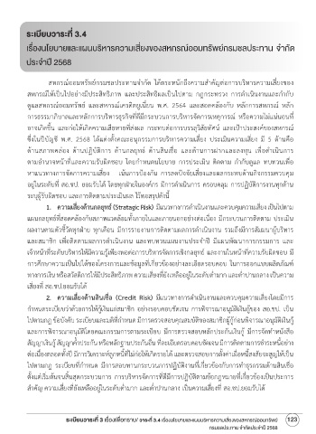 ระเบียบวาระที่ 3 เรื่องเพื่อทราบ/ วาระที่ 3.4 เรื่องนโยบายและแผนบริหารความเสี่ยงของสหกรณ์ออมทรัพย์ 123