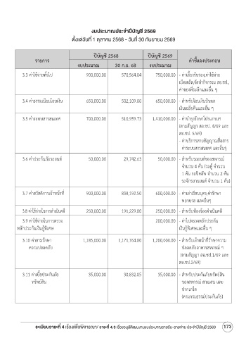 ระเบียบวาระที่ 4 เรื่องเพื่อพิจารณา/ วาระที่ 4.3 เรื่องอนุมัติแผนงานงบประมาณรายรับ-รายจ่าย ประจำาปีบัญชี 2569 173