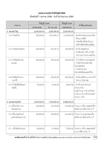 ระเบียบวาระที่ 4 เรื่องเพื่อพิจารณา/ วาระที่ 4.3 เรื่องอนุมัติแผนงานงบประมาณรายรับ-รายจ่าย ประจำาปีบัญชี 2569 175
