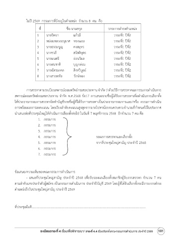 ระเบียบวาระที่ 4 เรื่องเพื่อพิจารณา/ วาระที่ 4.4 เรื่องเลือกตั้งคณะกรรมการดำาเนินการ ประจำาปี 2569 181