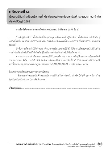 ระเบียบวาระที่ 4 เรื่องเพื่อพิจารณา/ วาระที่ 4.8 เรื่องการอนุมัติวงเงินกู้ยืมหรือการค้ำาประกันของสหกรณ์ออมทรัพย์ 189