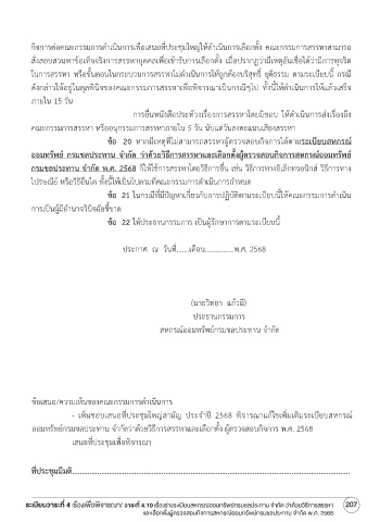 ระเบียบวาระที่ 4 เรื่องเพื่อพิจารณา/ วาระที่ 4.10 เรื่องร่างระเบียบสหกรณ์ออมทรัพย์กรมชลประทาน จำากัด ว่าด้วยวิธีการสรรหา 207