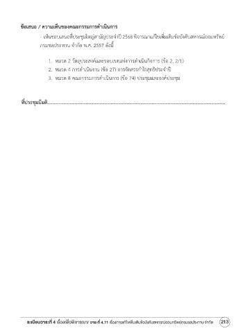 ระเบียบวาระที่ 4 เรื่องเพื่อพิจารณา/ วาระที่ 4.11 เรื่องการแก้ไขเพิ่มเติมข้อบังคับสหกรณ์ออมทรัพย์กรมชลประทาน จำากัด 213