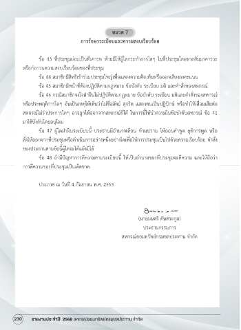 ขอ 43 ทปรื่ะชมยอมเปนทเคารื่พ หามมใหผใดำกรื่ะทาการื่ใดำๆ ในทปรื่ะชมโดำยขาดำสมมาคารื่วะ