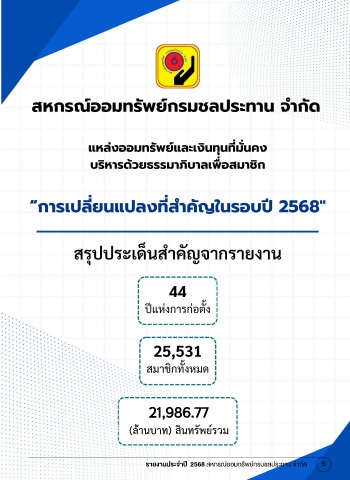 21,986.77 21,986.77 (ล้านบาท) สินทรัพย์รวม รายงานประจำาปี 2568 สหกรณ์ออมทรัพย์กรมชลประทาน จำากัด 5