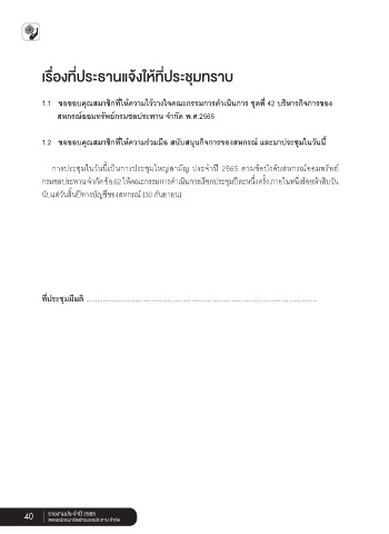 1.1 ขอขอบคุณสมาชิกที่ให้ความไว้วางใจคณะกรรมการด�าเนินการ ชุดที่ 42 บริหารกิจการของ