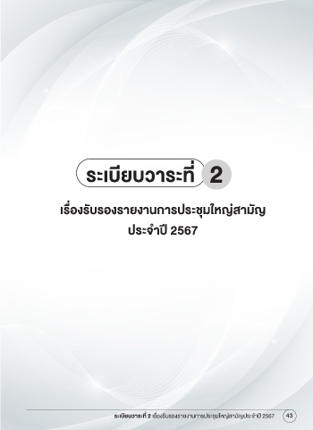 ระเบียบวาระที่ 2 เรื่องรับรองรายงานการประชุมใหญ่สามัญ ประจำาปี 2567 ระเบียบวาระที่ 2 เรื่องรับรองรายงานการประชุมใหญ่สามัญประจำาปี 2567 43