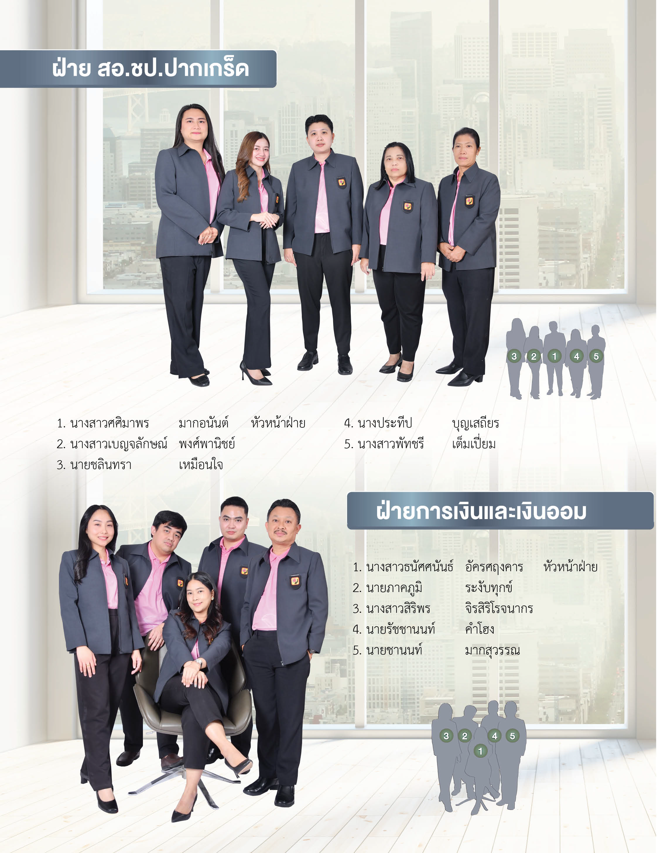 | 11 | นางสาววัชรา โฉมบุตร | ที่ปรึกษาด้านสหกรณ์ |